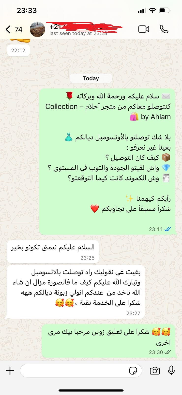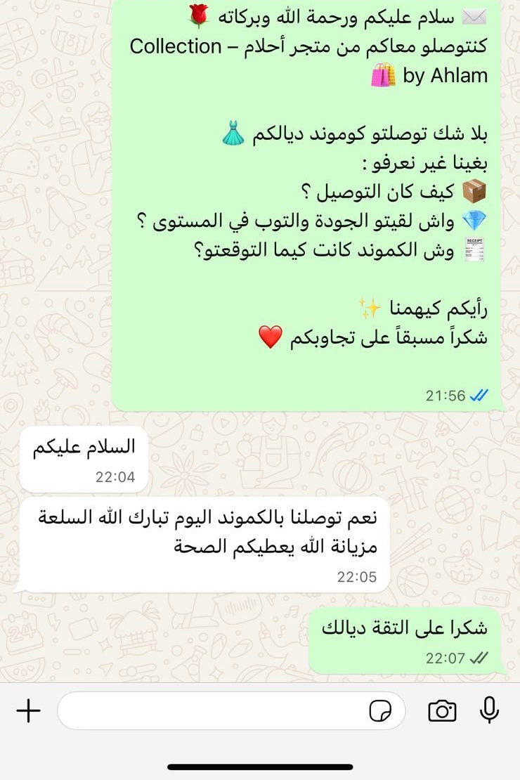 Contactez-nous sur WhatsApp au 0773874203📞 ou sur Instagram ahlame.collection pour une assistance rapide et amicale.
